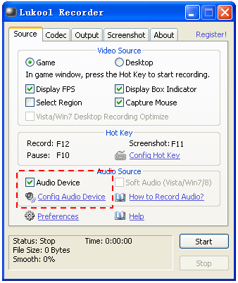 1. Click on the "Audio Setting" link on Lukool Recorder's "Source" tab.