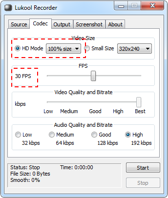 This mode can record video with the same screen size as the source, also keep a high video quality.